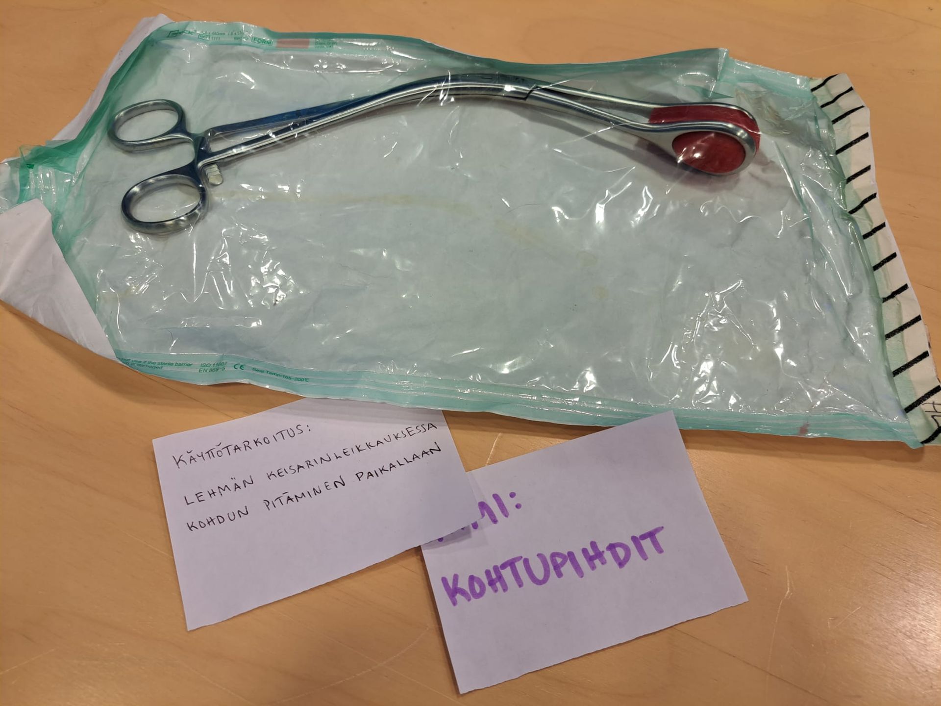 Diasulkeisten jälkeen pääsimme tutustumaan pienissä ryhmissä eläinsairaalaan, missä oli ehkä joulun läheisyyden takia hiljaista. Näimmekin vain kaksi hevos- ja kaksi koirapotilasta. Helmi mainitsikin, että kannattaa katsoa Yle Areenasta Yliopistollinen eläinsairaala -sarja, ellei se ole entuudestaan tuttu (https://areena.yle.fi/1-4393408). Odotteluaikana mietimme, mitä eläinlääkärin työssä käytettävät tavarat ovat ja mitä niillä tehdään.