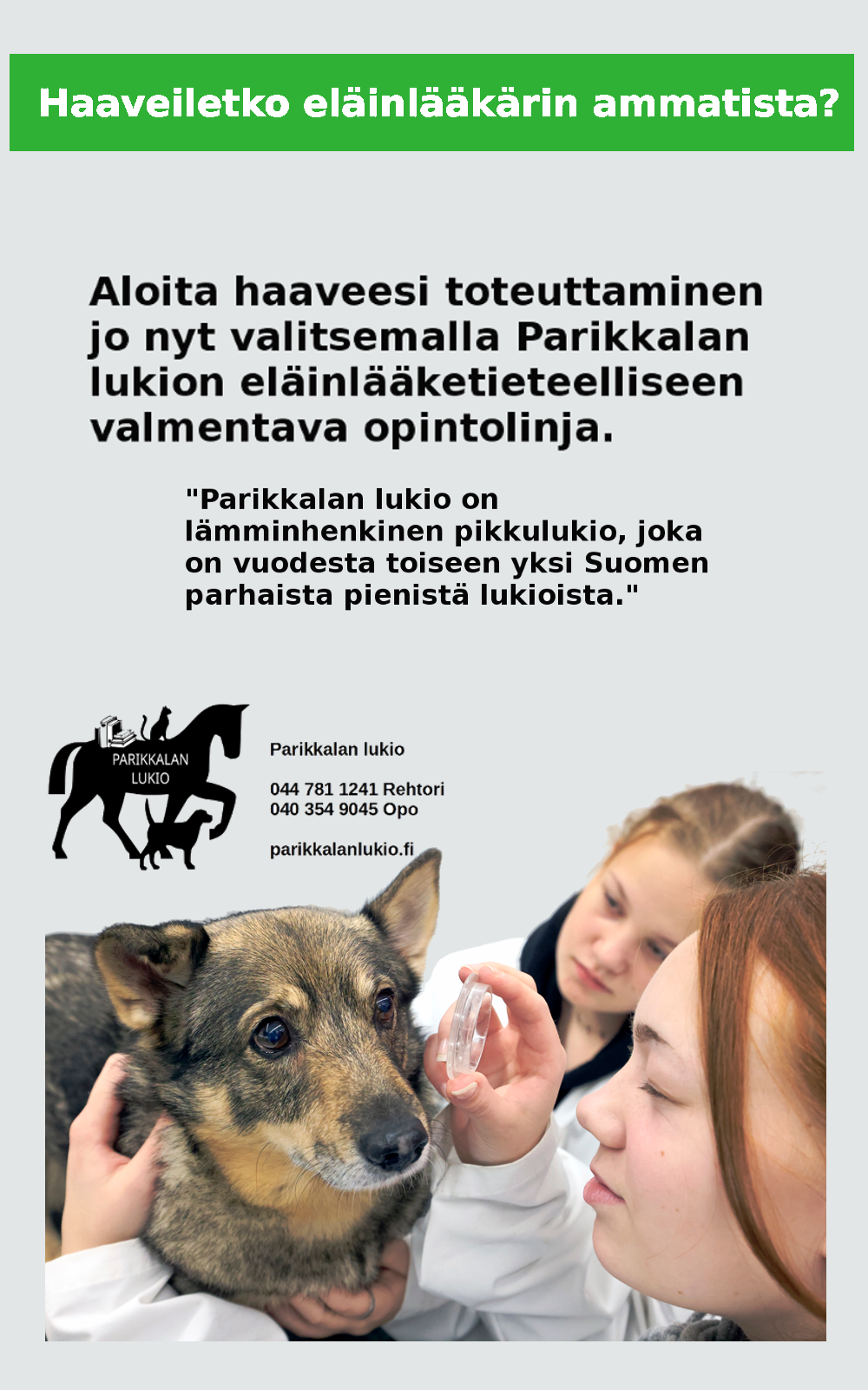 Tervetuloa Parikkalan lukion eläinlääketieteellisen linjan tutustumispäivään ti 13.1. klo 11-15.